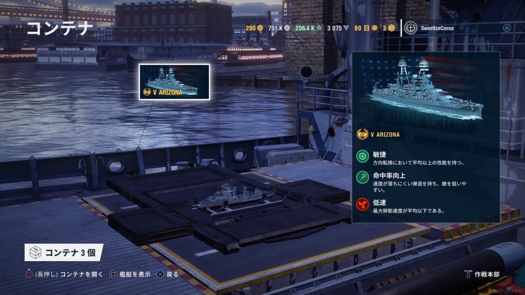 アリゾナ、この黒光りする鉄っぽい外観がちゃんと迷彩扱いになってるじゃん! しかも、その迷彩が最高ランクまですでに上がっているという… ありがたや~。