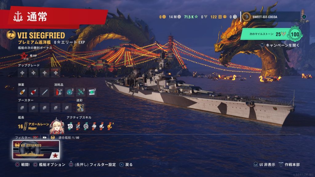 アリーナ戦の影響もあって、今、もっとも使い込んでる艦艇がフリードリヒ。巡洋戦艦としての速力があれば味方巡洋艦とも連携プレイできる。乗ってて楽しいぞ!!