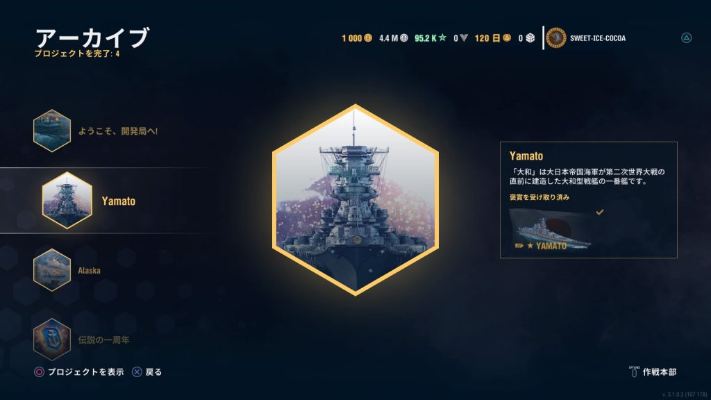 「開発局から大和がなくなってる!?」って思って驚いたけど、新しくアーカイブの項目が出来てて、そこに格納されてるだけだった。