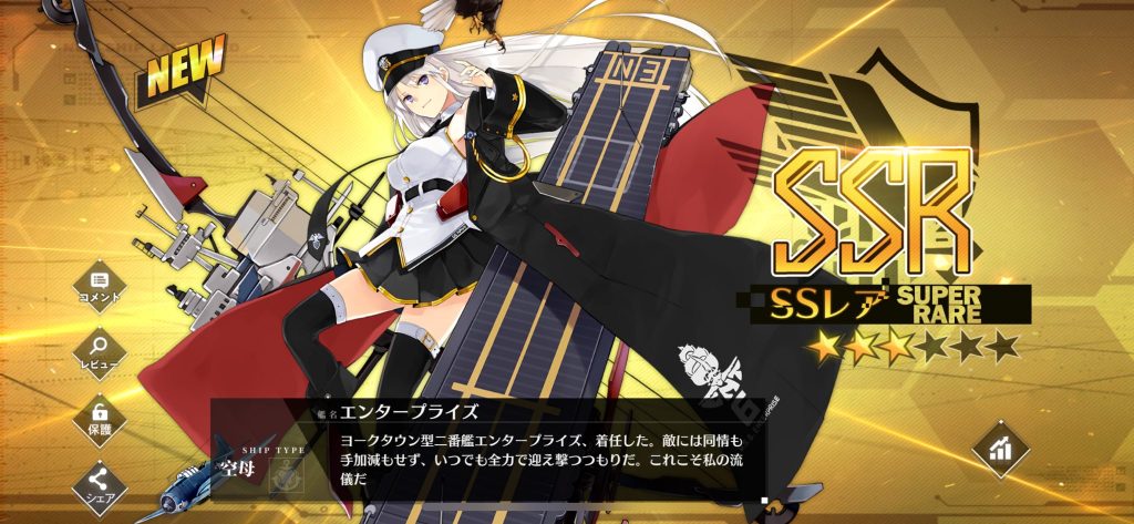 今更ながら「アズールレーン」始めました。で、ずっと勲章を貯め続けるだけのスタイルでプレイし続け、4日目にしてようやく念願の空母エンタープライズにお越し頂く事が叶った。よかった。めでたしめでたし。