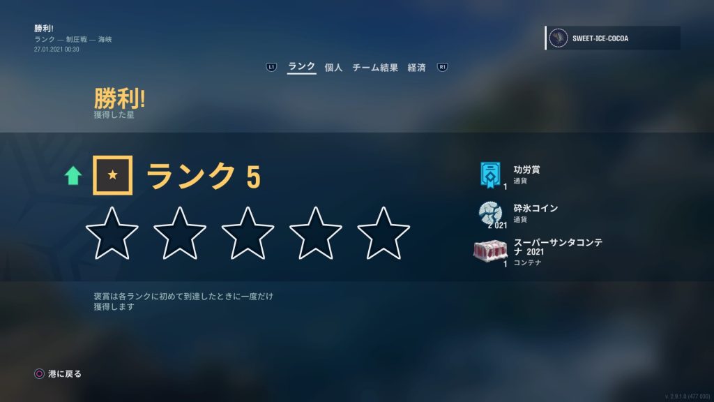 ランク戦、やっとランク5まで来れた。でも、残りの期間も少しだし、これからランク1を目指したところで、もう間に合わないかもしれないな。