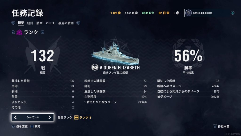 とあるランク戦。連続攻撃の成功でクイーンエリザベス艦長の「2隻同時に撃破よ!ピースオブケイク!」というめずらしいボイスを聞かせて頂きました!!