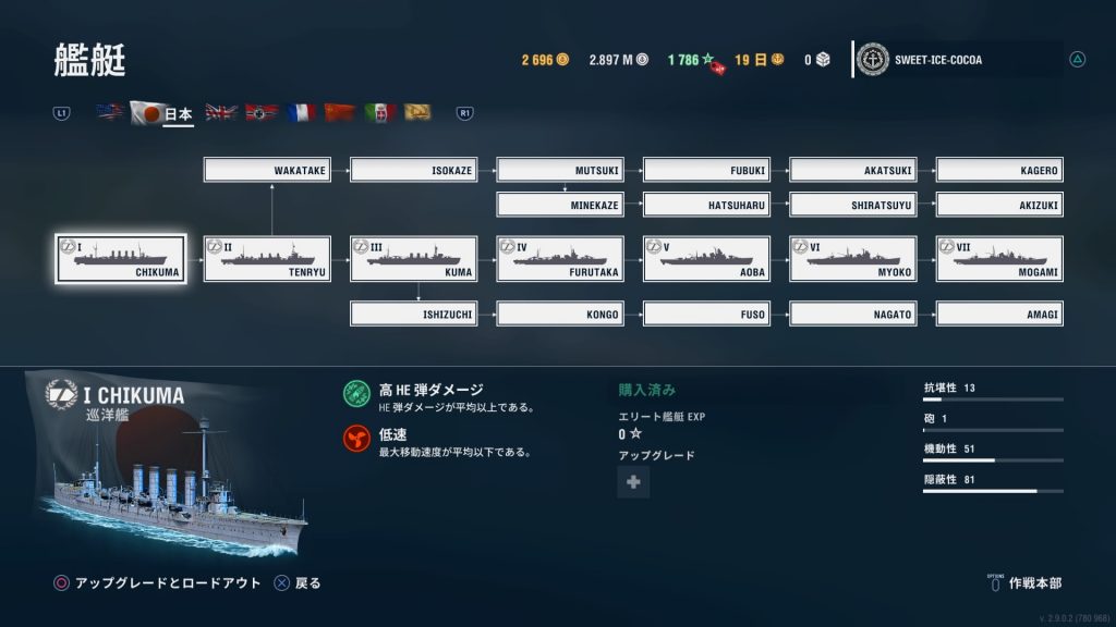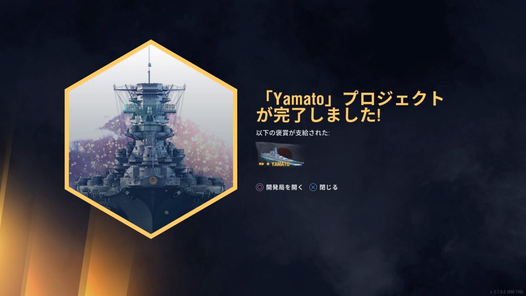 遂に! ようやく日本艦ツリーを完成させることが出来たー! やったー!!(余談だが、途中、完成間近まで行ったタイミングで駆逐艦の新ブランチが追加された時は、思わず頭を抱えたよね…)